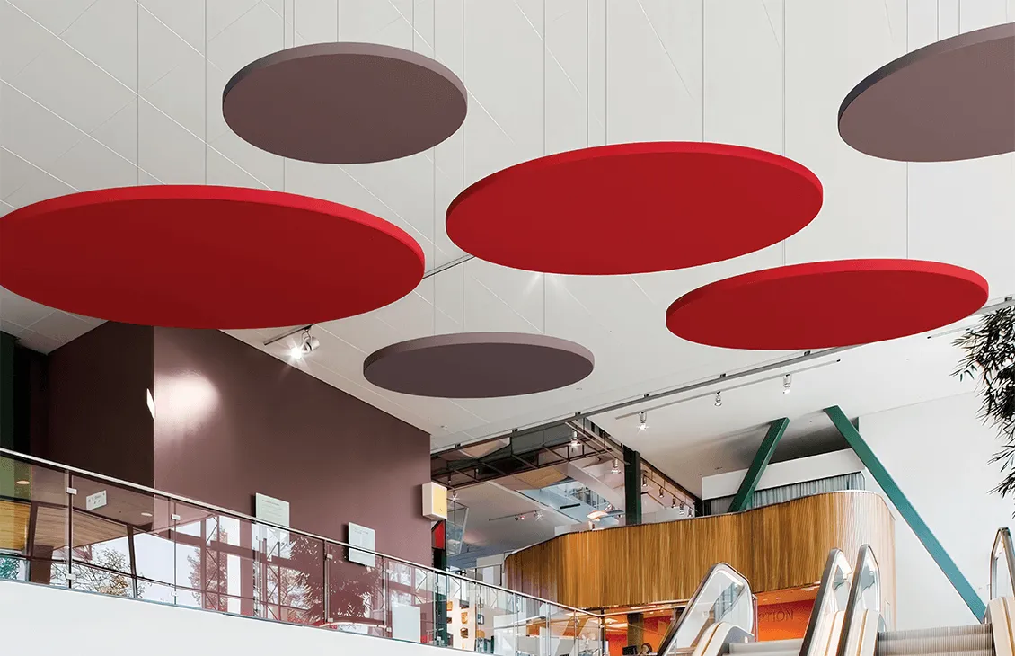 Ecophon Solo Light Круг — это современный и стильный свободновисящий элемент потолка, предлагающий функциональное решение для помещений, где невозможен или нежелателен монтаж традиционной потолочной системы. Эти панели идеально подходят для сохранения изначальной высоты потолка, добавляя при этом изысканность и современный дизайн.